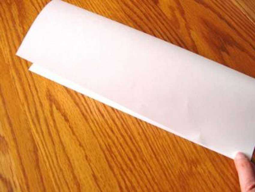 Возьмем бумагу и кладем ее перед собой, затем сворачиваем ее по полам горизонтально.