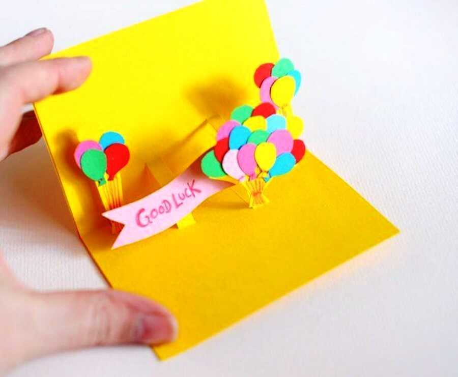 Невероятно эффектная открытка с объемными воздушными шариками создается достаточно просто.