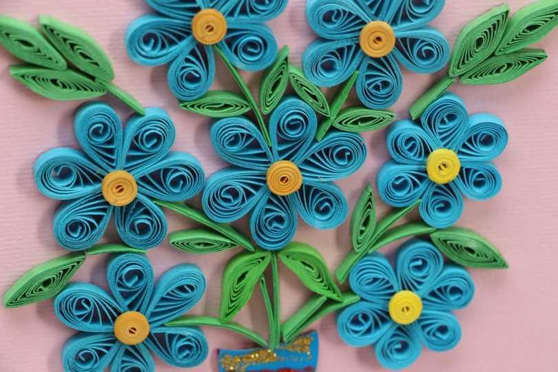 - Дополнить картинку можно еще несколькими цветками, бабочками и другими элементами. Таким же образом, накручивая всевозможные завитушки, творят великолепные фигурки животных, игрушки и шикарные картины.