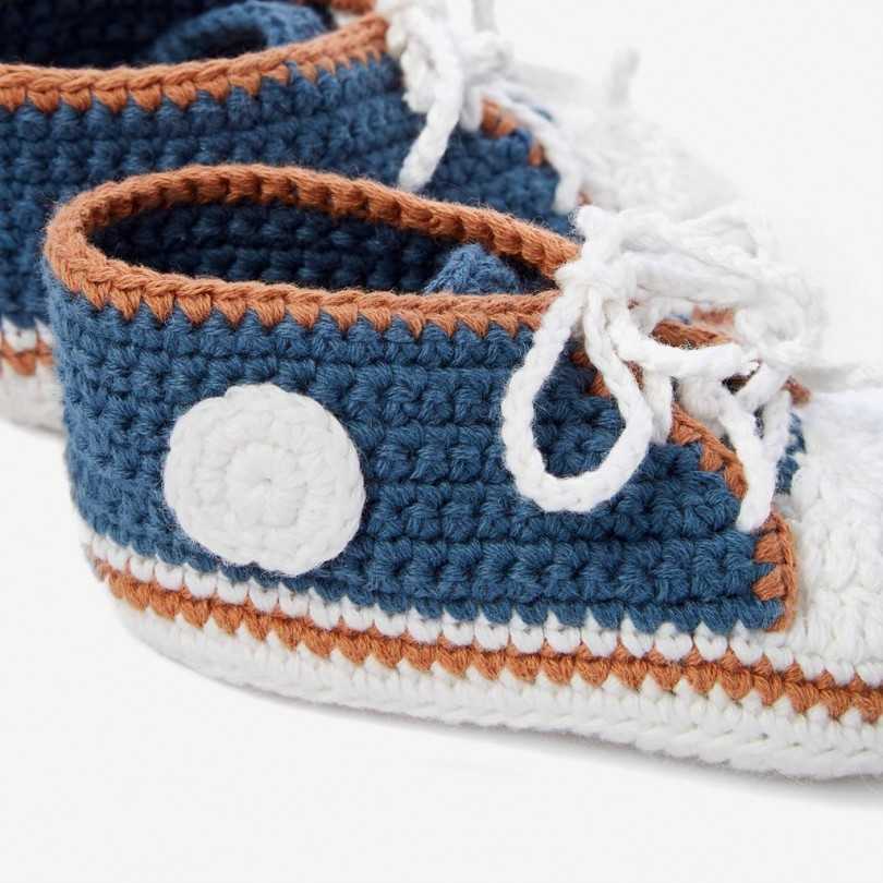 В зависимости от выбранной нитки определяют предназначение башмачков. Они могут быть праздничными, повседневными, домашними, для улицы, и т. д. Пол малыша тоже важен. Для мальчика можно сделать интересные бело-синие «кроссовки» или «кеды».