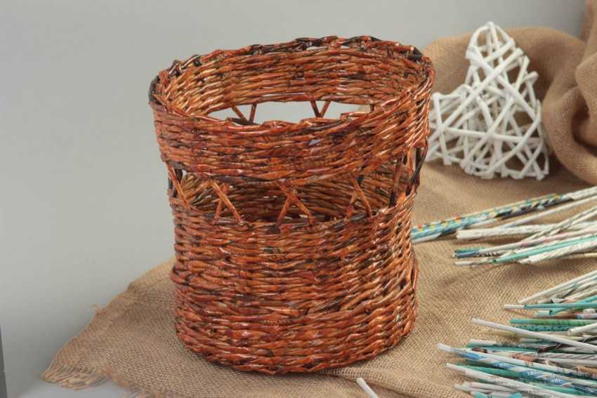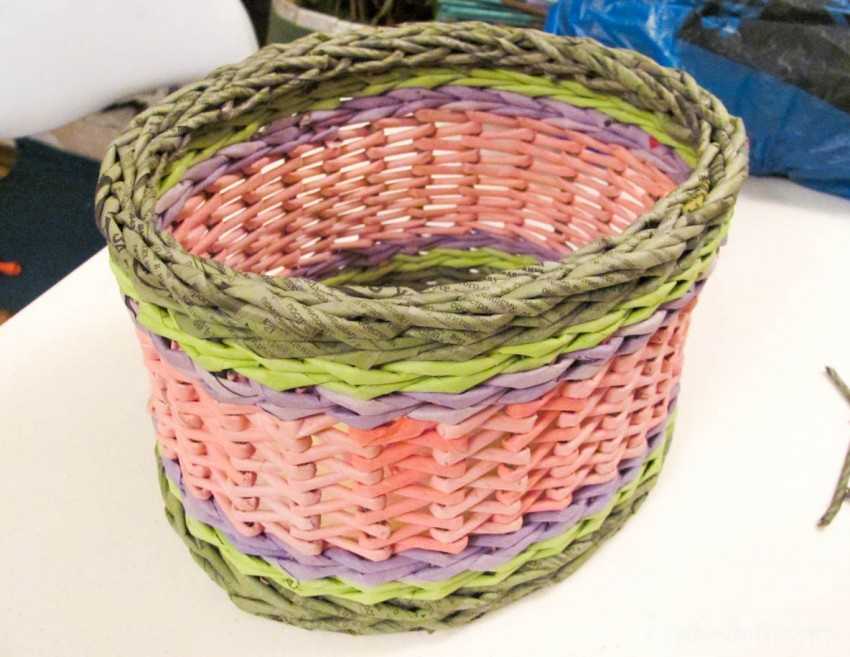 Как сделать корзину из газетных трубочек пошагово