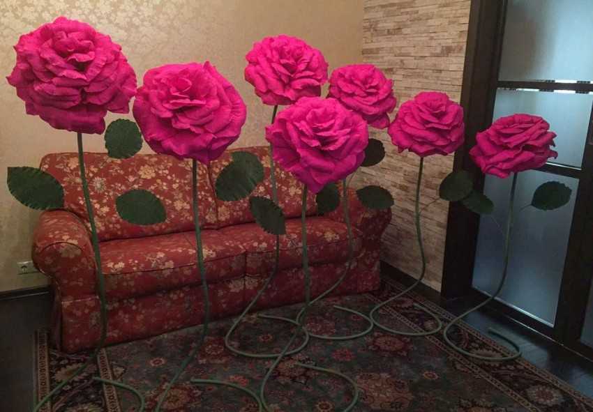Ростовая роза из бумаги смотрится необычно на любом торжестве. Если создать несколько экземпляров, то получится огромный букет.
