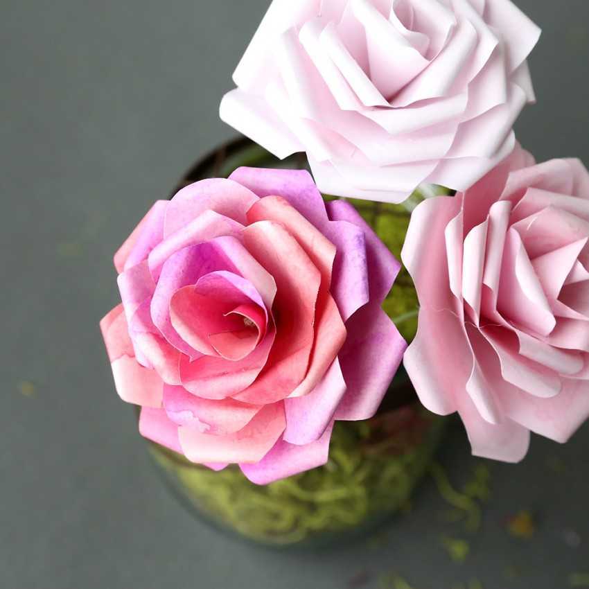 Этот пример изготовления бумажной розы прост в исполнении, но в ходе работы вы получите истинное удовольствие. Полученные розочки можно использовать как для декора, так и в качестве подарка. Такой презент понравится каждому.