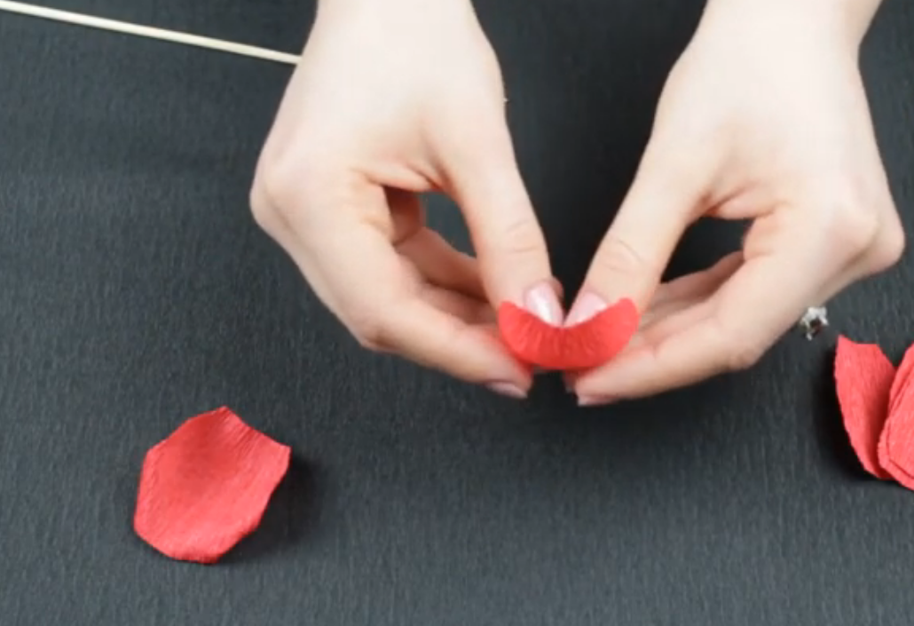 А после расправьте, придав немного вогнутую форму, как у лепестков пиона.