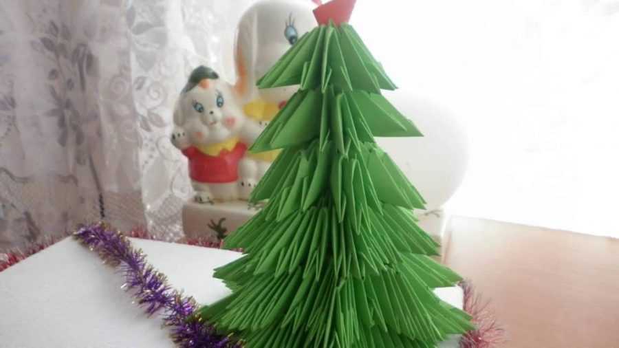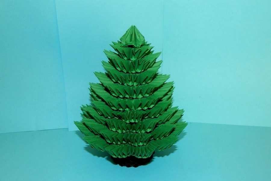 Чтоб собрать простым способом красивую, объемную зеленую елочку потребуется треугольные модуля, сделанные из прямоугольников размером 4 на 6 см: