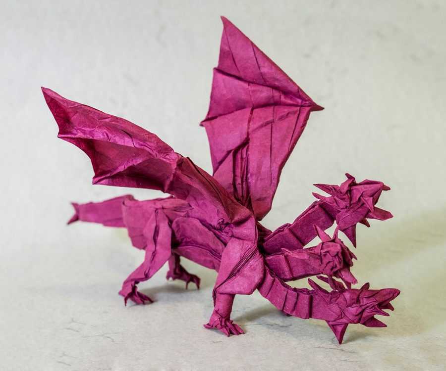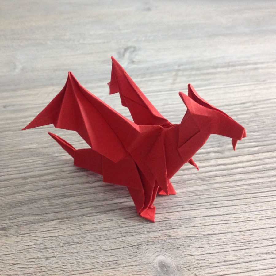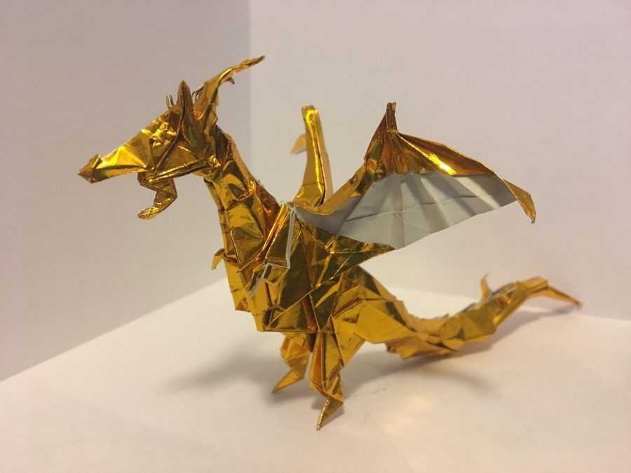 В традиционной технике не используется клей. Процесс получения дракона представляет собой многократное сгибание бумаги с получением базовых фигур. Рекомендуемая последовательность действий при выполнении оригами дракона с крыльями: