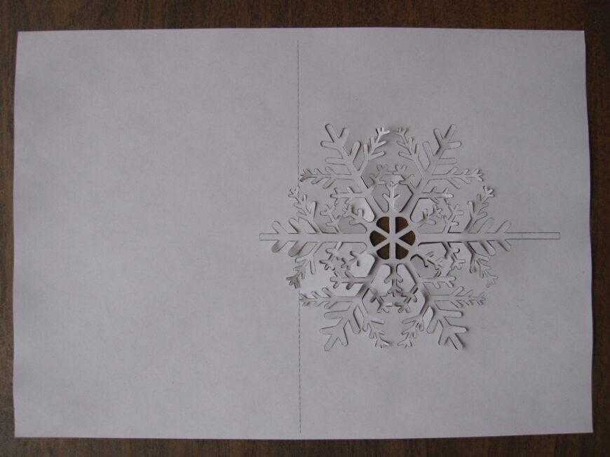 Очень важно, чтобы именно со стороны сгиба разрезы доходили не до конца детали, так как это будет центральная часть морозного цветка