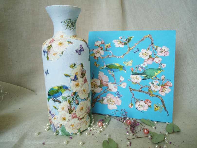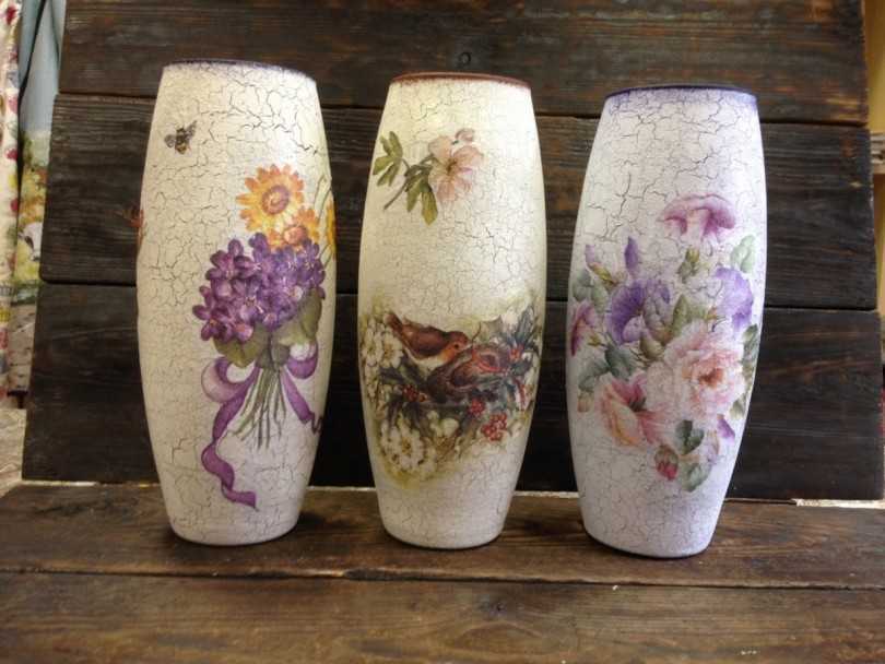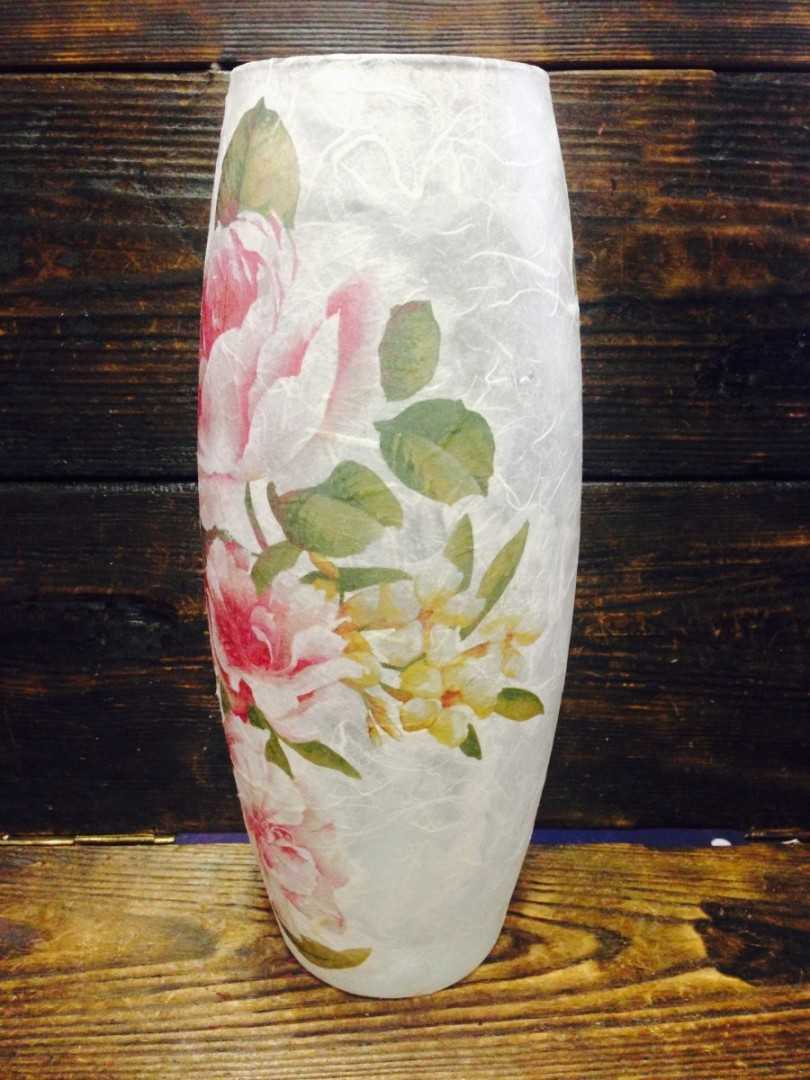 Стекло чаще всего используется как основа для создания вазы для цветов. Оно великолепно удерживает жидкость, легко моется и украшается. Более безопасной и экономичной считается пластиковая тара. Она наравне со стеклом служит прекрасной основой для воплощения самых смелых творческих идей.