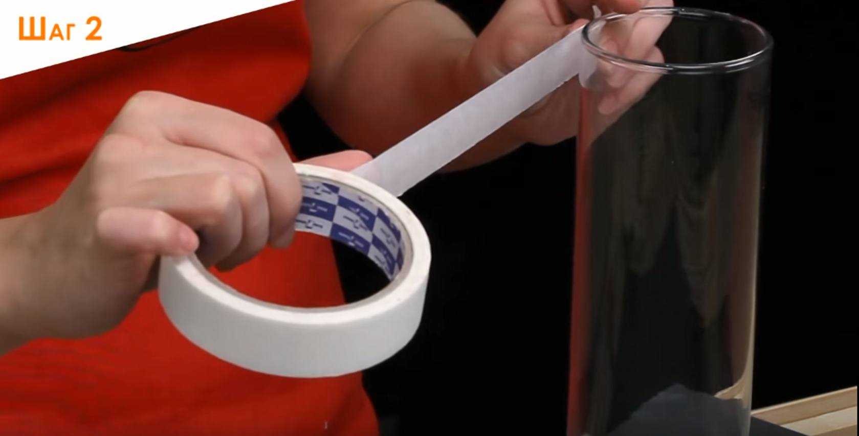 2. С помощью строительного скотча диаметром 3-5 сантиметров, нанесите на поверхность вазы абстрактные полоски. Они могут быть абсолютно ровными или расположены диагонально.