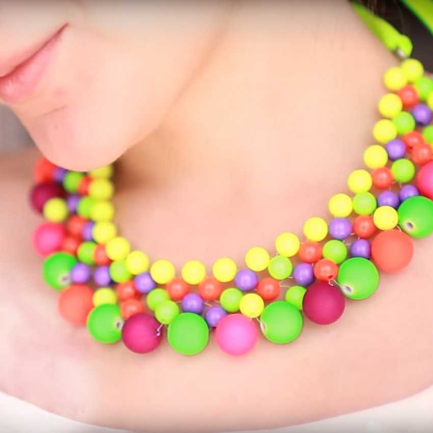 Для этого ожерелья лучше всего подойдут огранённые бусины. Игра света на них придаст дополнительный блеск вашему украшению. Найти всё необходимое легко в магазинах, посвящённых прикладному искусству или работе с тканями.
