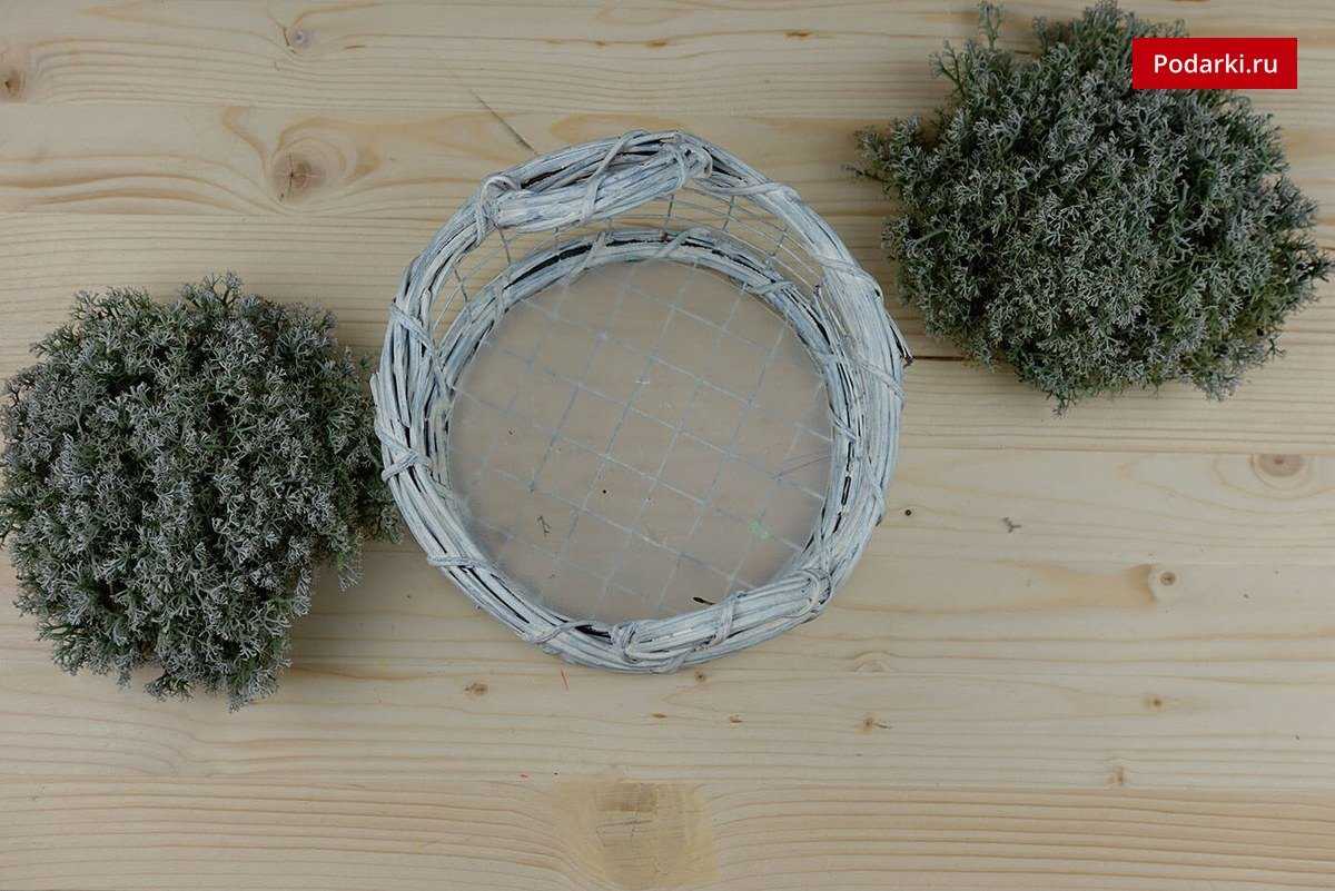 Устанавливаем в корзину мох. Также можно воспользоваться флористической губкой. В данном случае она подходит не меньше.