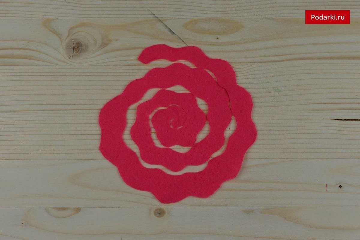 Наносим клей на заготовку и сворачиваем ее так, чтобы получилась розочка.