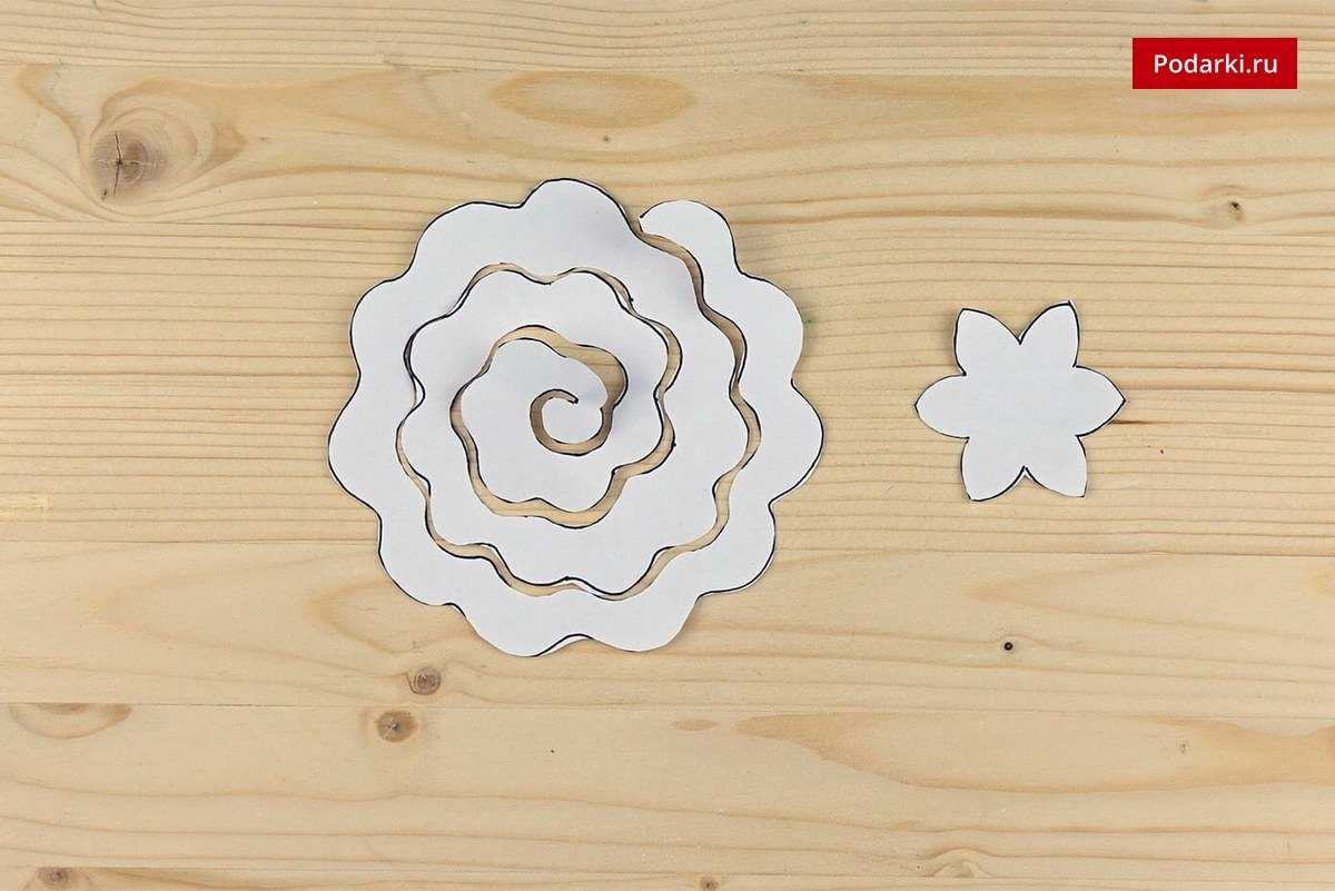 - На бумаге нарисовать лепесток. Если это круг или форма цветка, то каждая деталь меньше предыдущей на 0,5 см, не менее 10. Если капля или сердце, то сделать 3-4 размера минимум по 6 штук.
