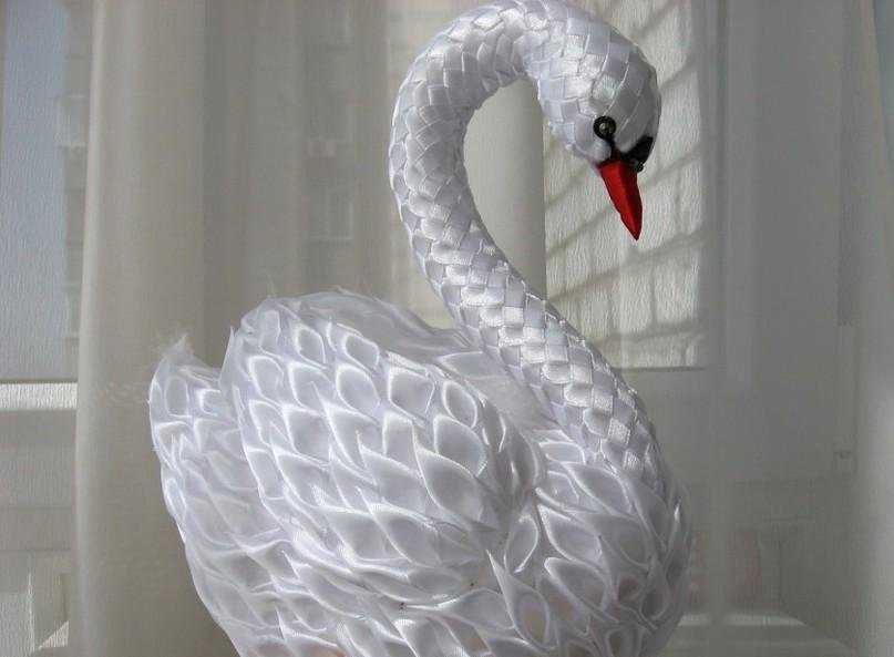 Например, букет невесты можно изготовить из скрученных роз. Для этого понадобится лента 4-5 см, длиною 1,2 м. С одной стороны загибают уголок и скручивают в трубочку. До конца длины обматывают сердцевину лентой, перекручивая её, на небольших промежутках, с лица наизнанку и обратно. Второй край прячут под последний лепесток, и закрепляют конструкцию прошив ниткой.