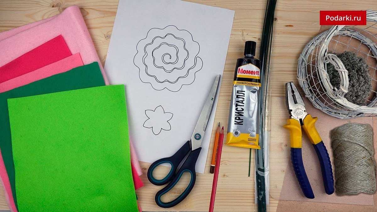 - клеевой пистолет, ножницы, иголка с ниткой.
