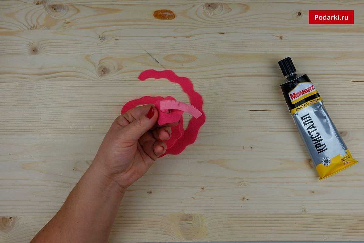 Вырезаем тонкую полоску из фетра другого оттенка.