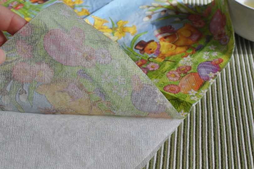 Многослойные салфетки разделите на части. Оставьте только верхнюю часть с рисунком.