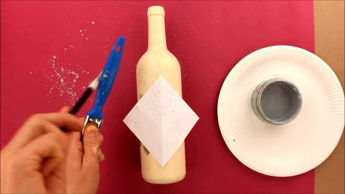 Постучите кисточкой с краской над поверхностью бутылки, так вы украсите её брызгами