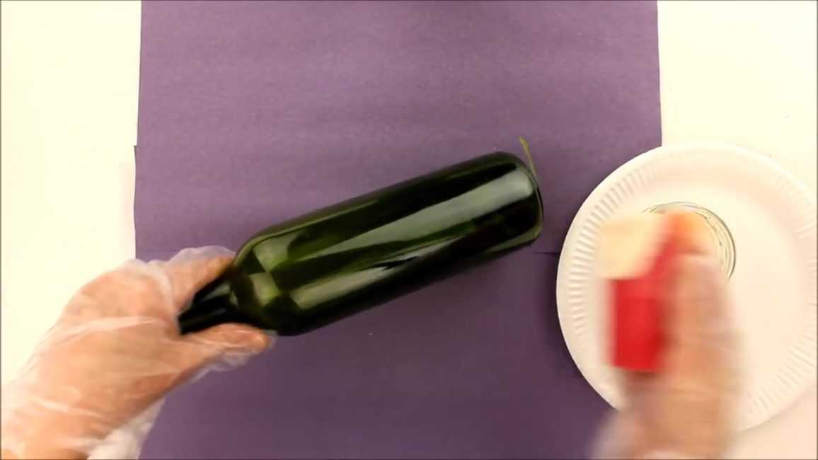 Осторожно, мелкими вертикальными мазками нужно покрыть всю поверхность бутылки, избегая пропусков. Понадобится дождаться полного высыхания и повторить процедуру несколько раз
