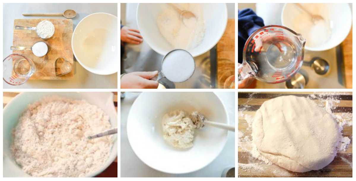 В муку высыпать соль, перемешать и понемногу добавлять воду параллельно перемешивая. Добавить масло и начать месить тесто. Если тесто будет приготовлено правильно, оно не будет липнуть к рукам или же рассыпаться. Следите за состоянием теста и в случае необходимости корректируйте густоту с помощью воды и муки. После того как тесто будет готово, заверните его в пакет и положите в холодильник на пару часов. Это действие желательно выполнить, чтобы лепка прошла успешно.