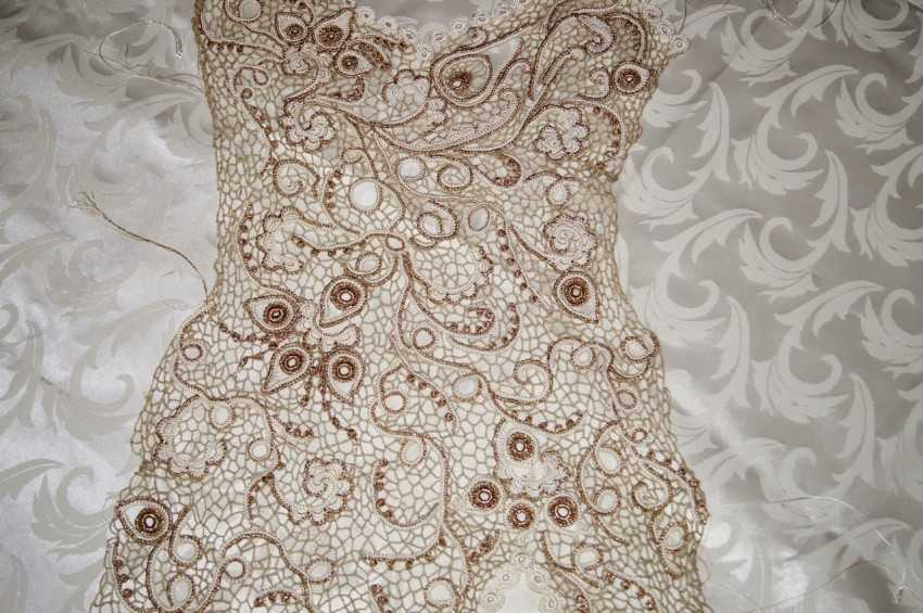 Техника ирландских кружевниц особенная и ее можно сделать только вручную. Объемная вязка делается при помощи тонкого крючка. Сборка множества отдельных компонентов иголкой — это кропотливый труд, который производится обычно при помощи манекена. Кружевница старается сделать единую композицию, чтобы она идеально сидела по фигуре и не было заметно швов.