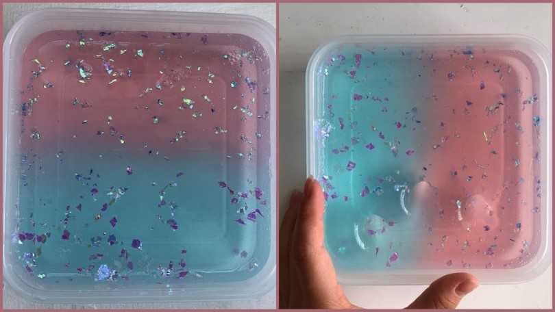 - По желанию в слайм можно добавить блестки. Учтите, что блестки могут окрасить лизуна в свой цвет.