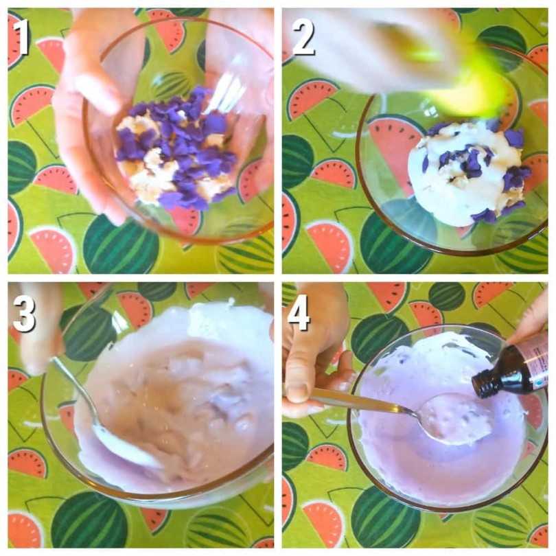 - добавьте красящий компонент (чтобы не испачкать руки, лучше выбрать пищевой краситель);