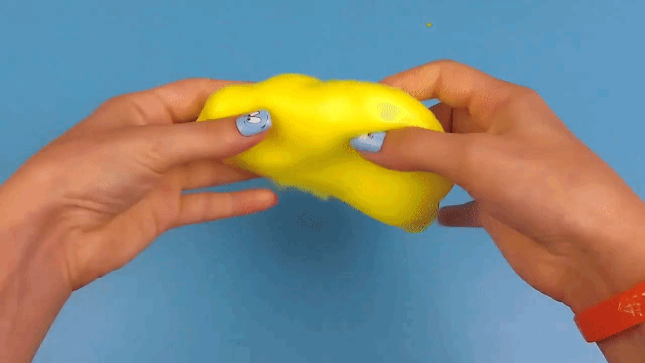 - Если лизун прилипает к рукам очень сильно, то можно смазать его капелькой подсолнечного масла.