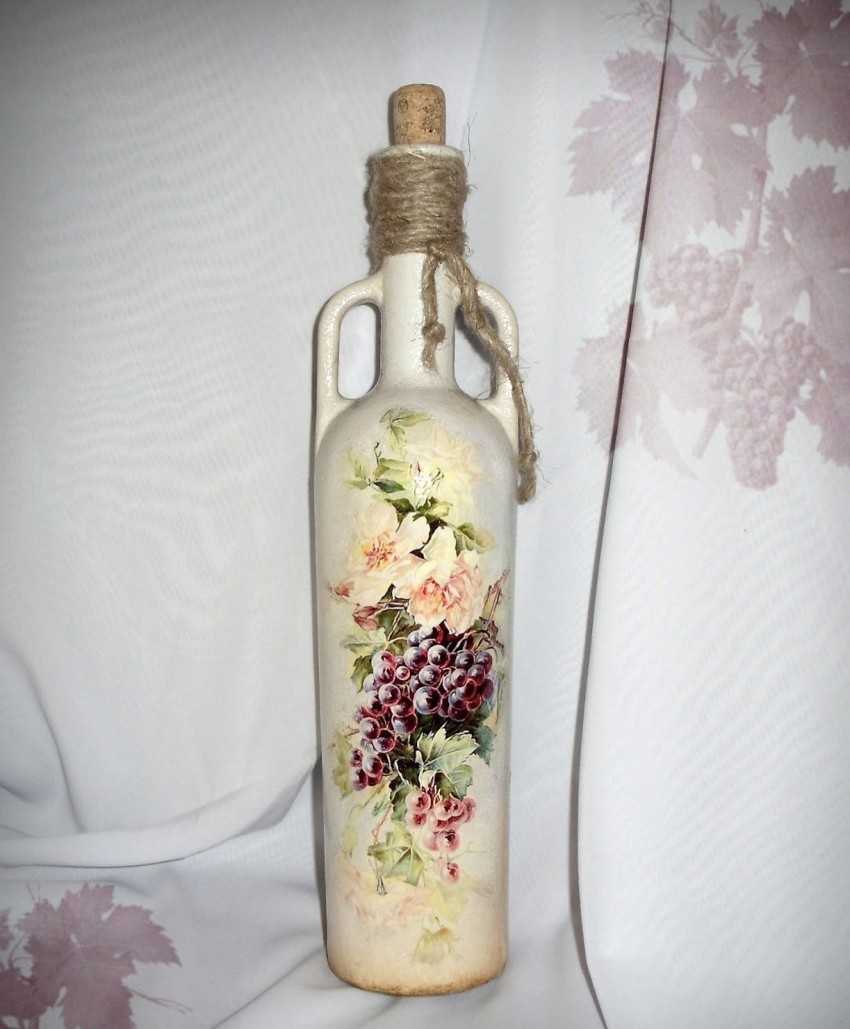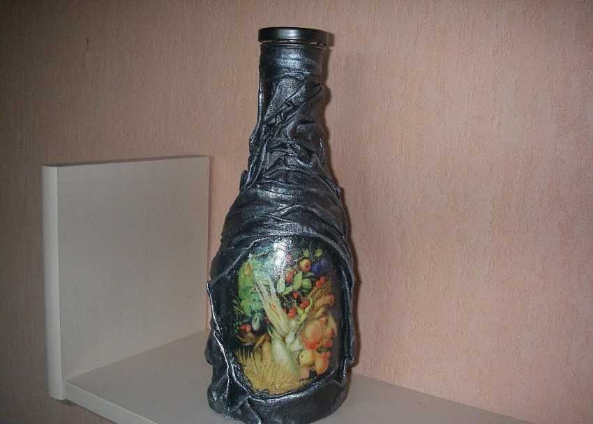А ещё обыкновенная стеклянная бутылка после декупажа превращается в оригинальный подарок.