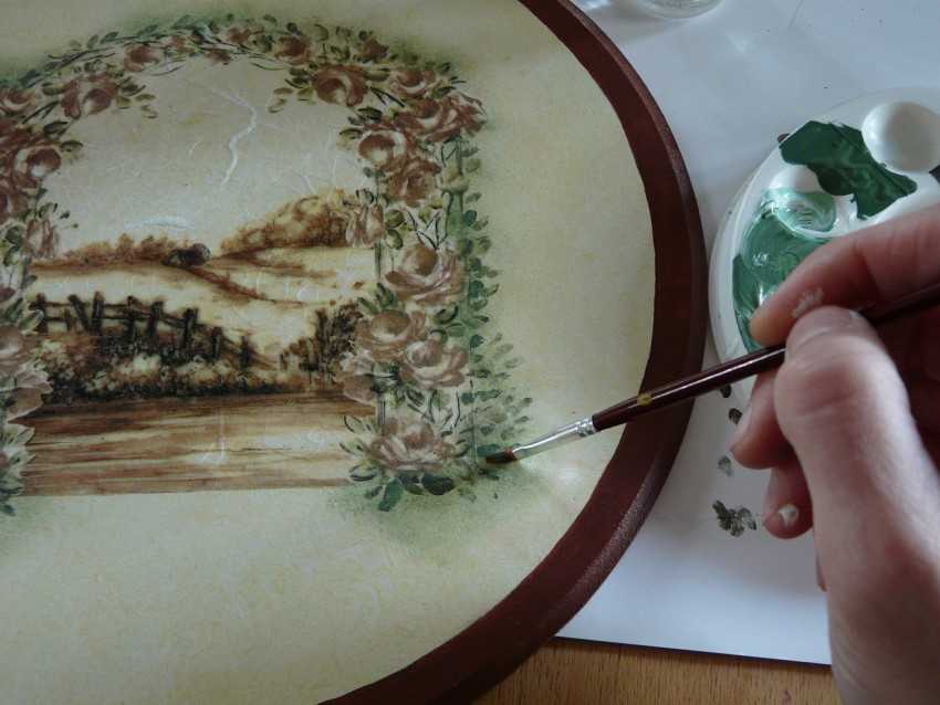 Собираясь украсить любой предмет мебели, шкатулку, посуду или сувенир, на рабочем столе нужно собрать: