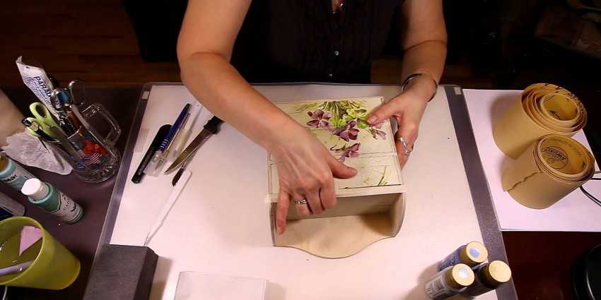 - чтобы добавить изюминку, можно покрасить бортики шкатулки розовой акриловой краской;