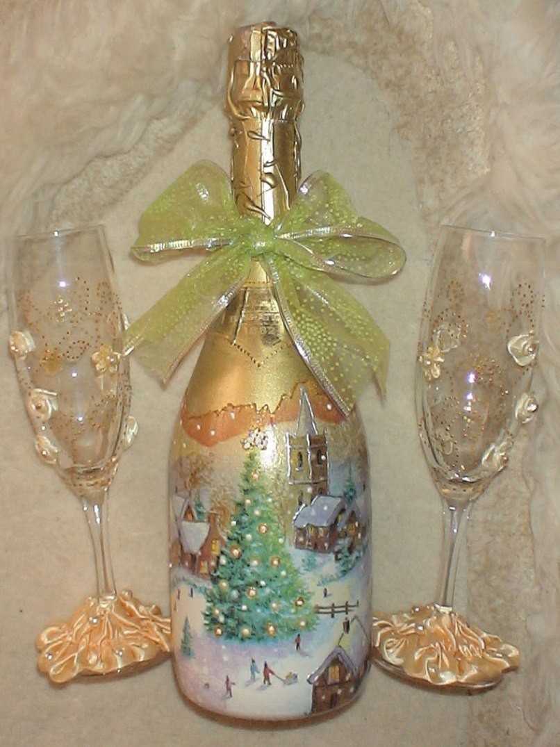 Такая бутылка послужит отличным украшением Новогоднего стола.