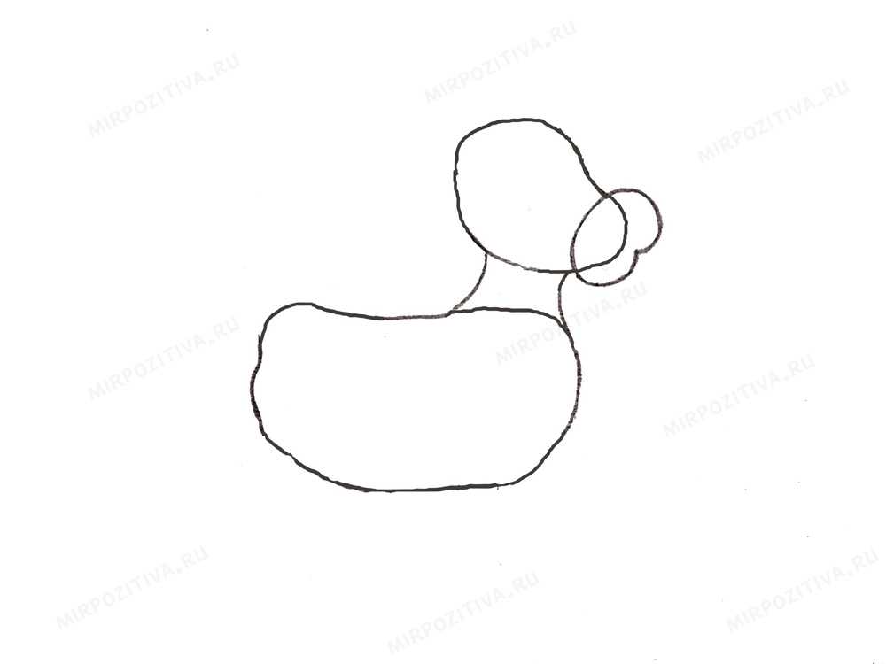 - Не сильно нажимая на карандаш чертится овал головы. Добавляются две короткие линии для шеи. Далее в качестве наброска туловища выступает прямоугольник.