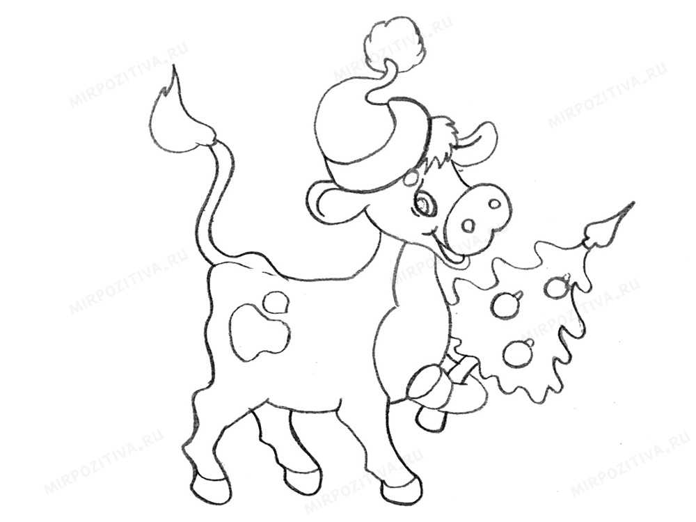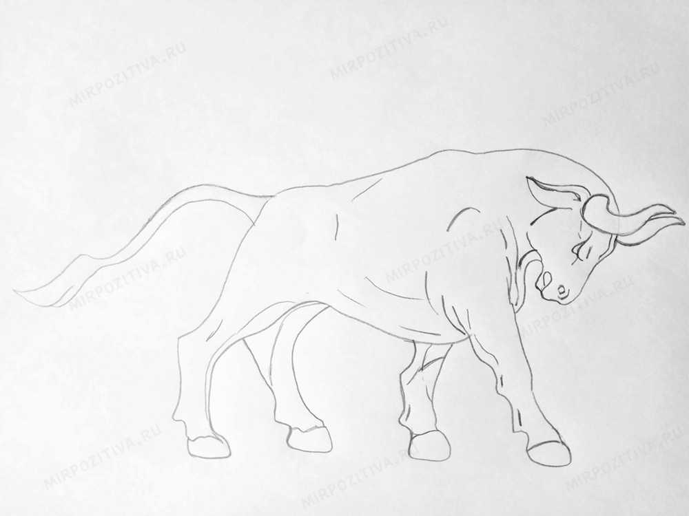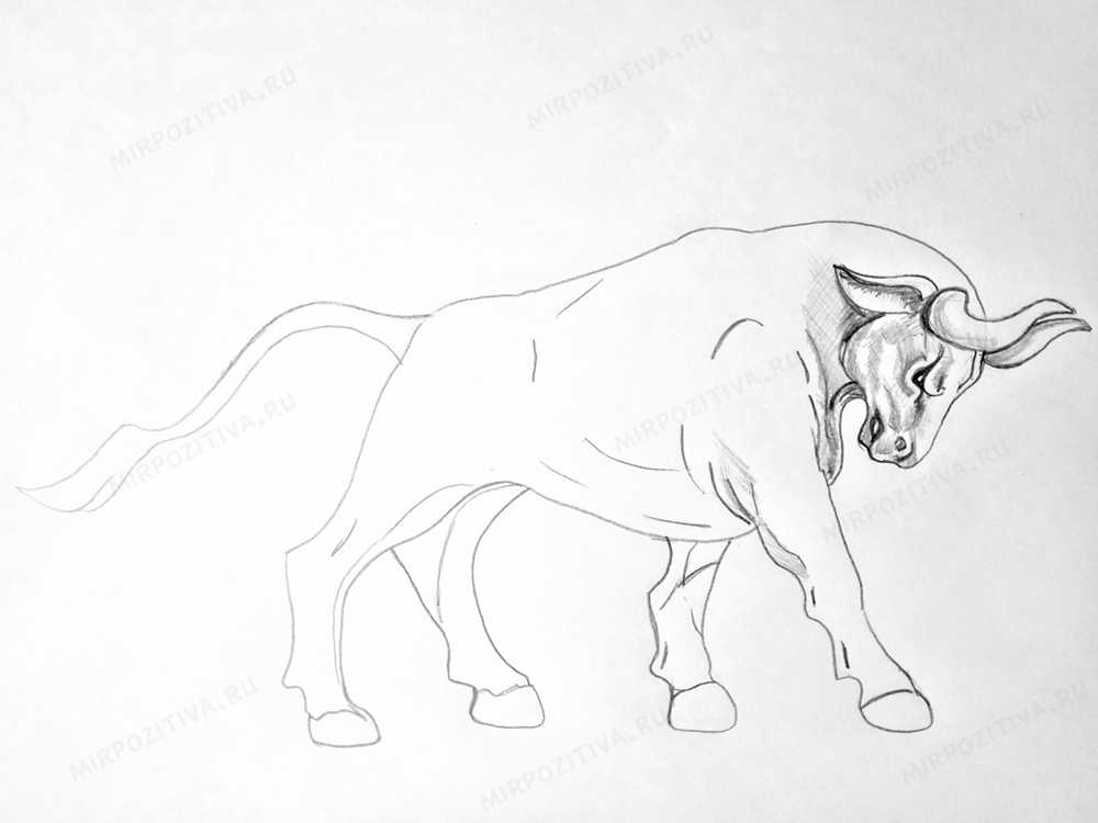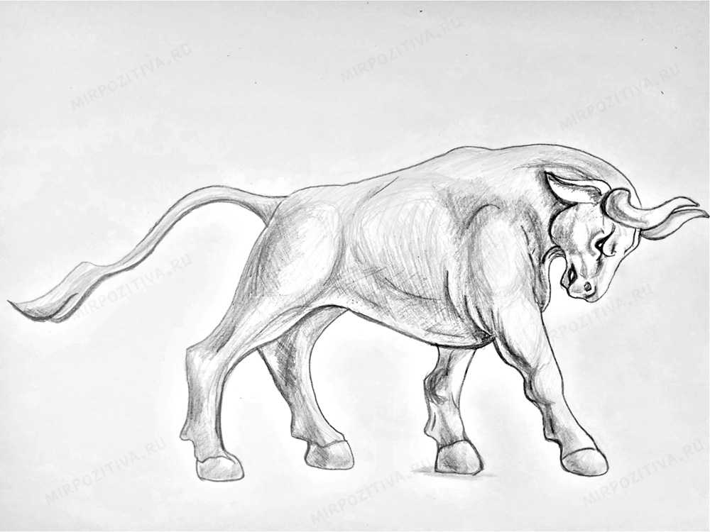 Как выполнить черно-белый рисунок быка карандашом поэтапно