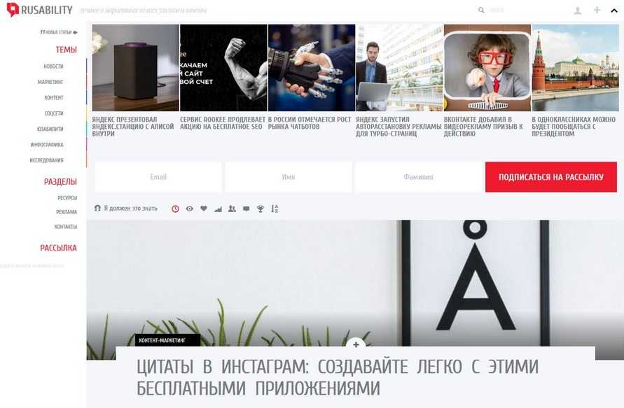Издание об интернет-маркетинге. Все про то, как продвигаться в интернете: контент, SMM, юзабилити и т. д.