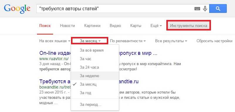 Чтобы не натыкаться на старые темы, используйте гугл-поиск. Зайдите в Инструменты поиска, нажмите За все время и выберите небольшой период времени – месяц или неделя. Просмотрите выдачу и разошлите предложения о сотрудничестве подходящим сайтам.