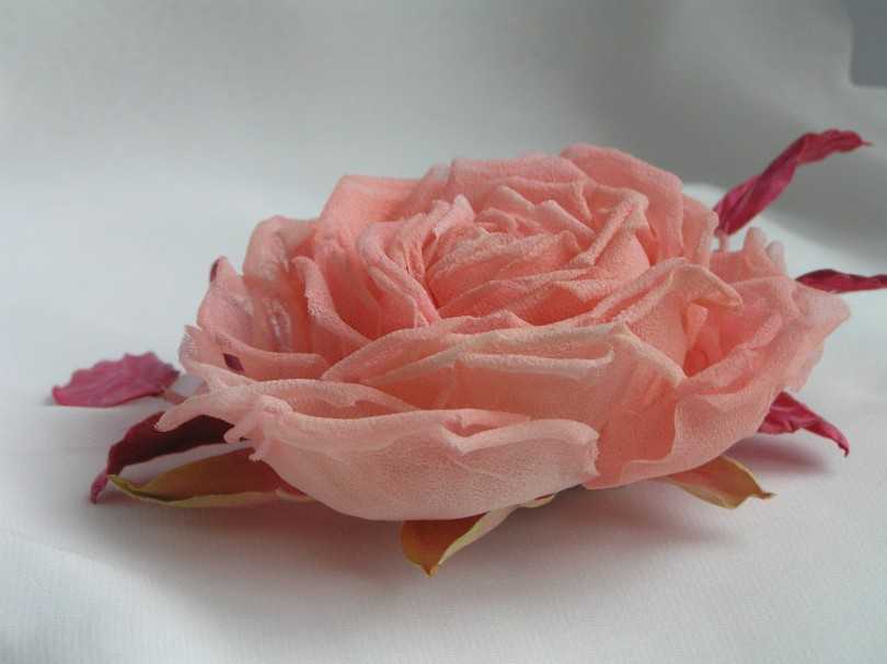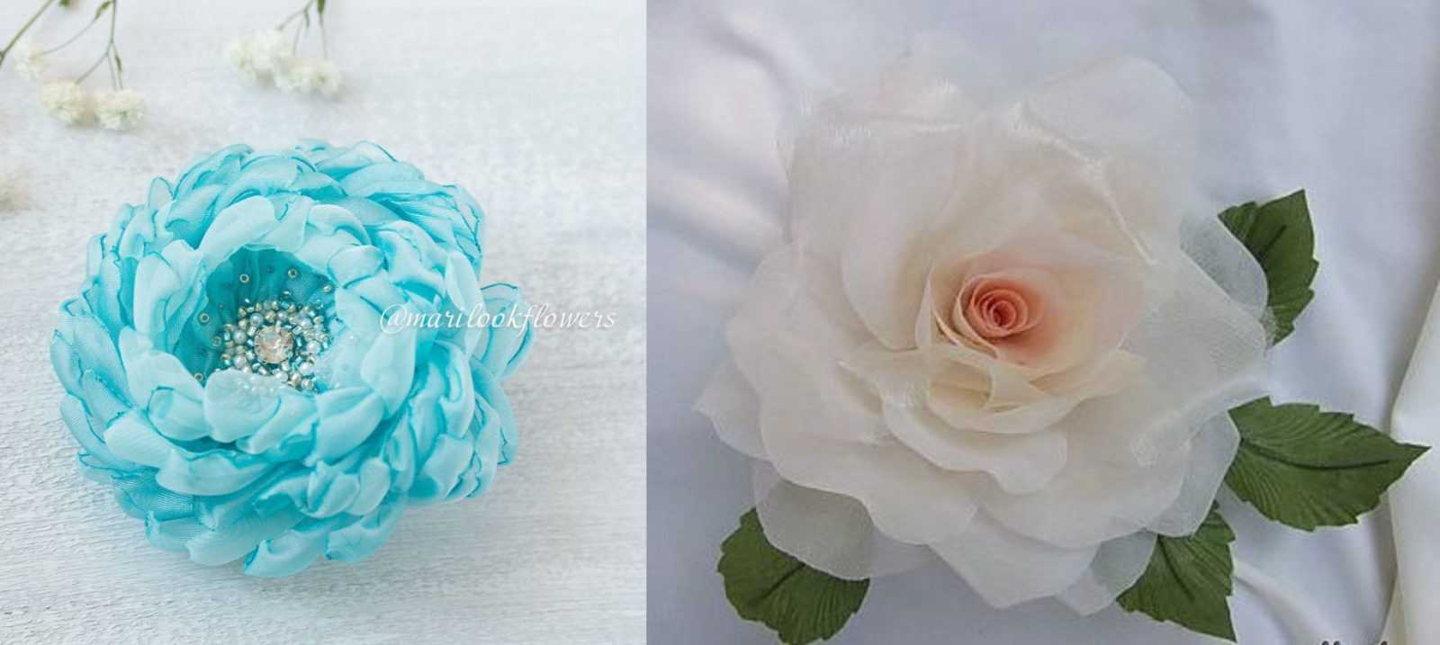 - из шифона — легкие и практически невесомые цветы украсят летнюю одежду и не утяжелят образ