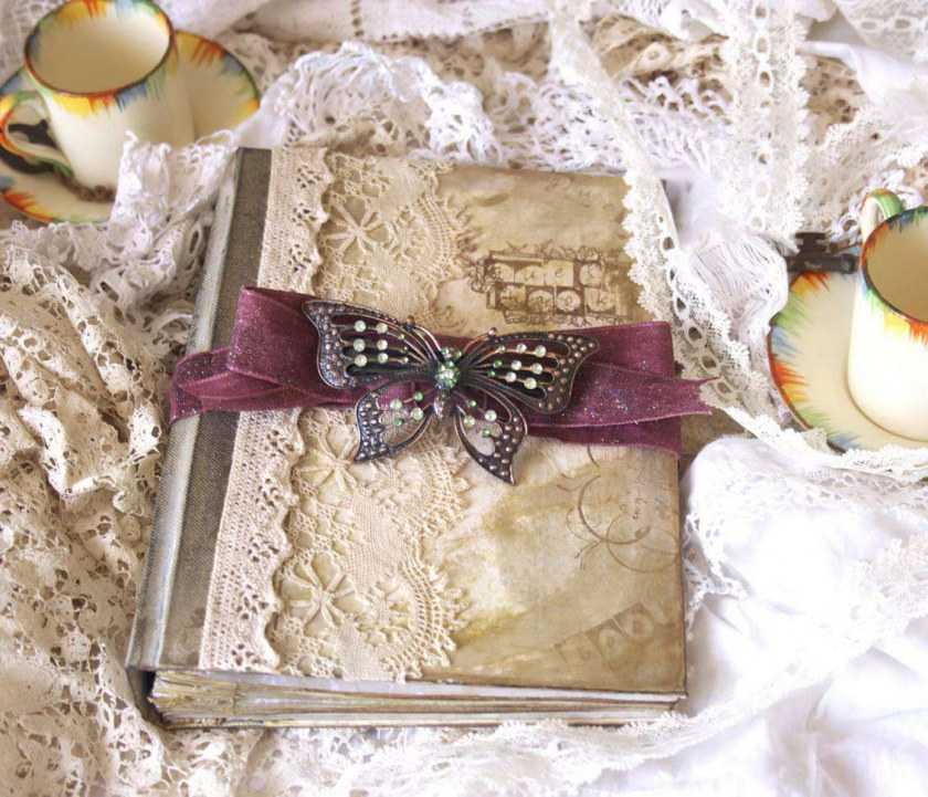 Декор для такого альбома можно найти в бабушкиных вещах.