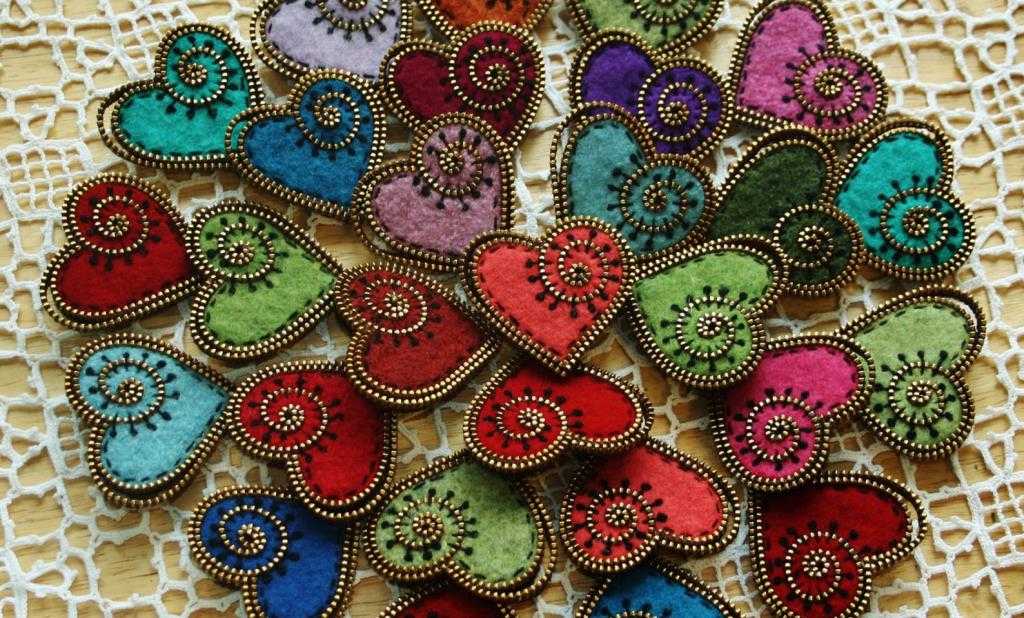 - Ко второй детали сердца с обратной стороны пришейте застежку (булавку).
