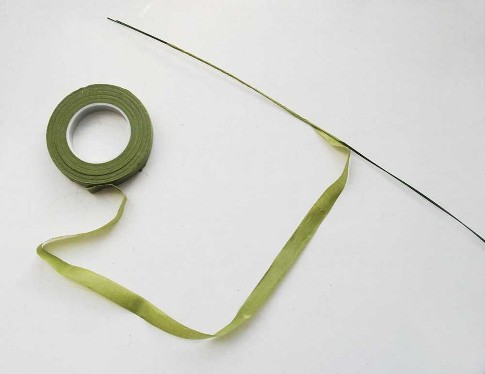 7) Тейп-лентой обматываем стебель цветка.