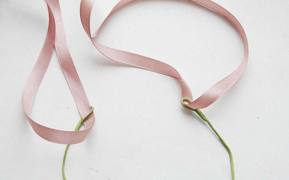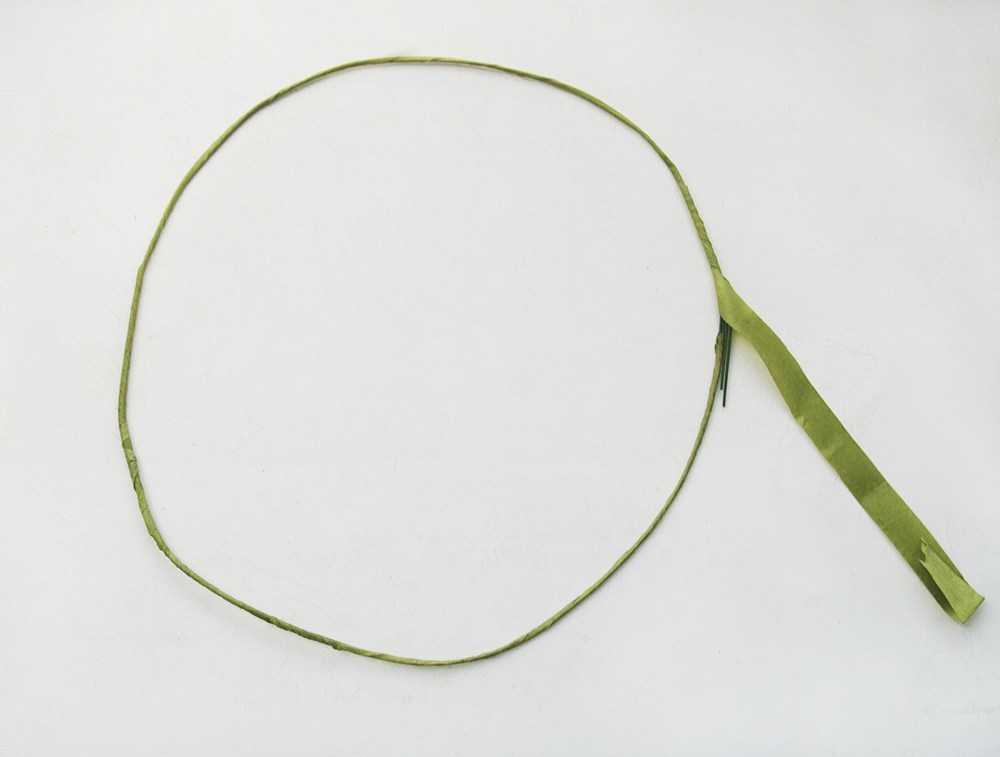 Откройте кончик ленты, приложите к основе на 10 см от края и обмотайте проволоку.