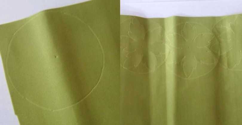 10. Затем нам понадобиться зеленый фоамиран. Заготавливаем окружности по количеству желтых соцветий. Диаметр окружности – 7 сантиметров