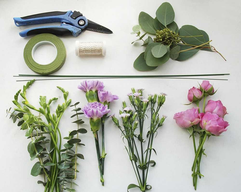 - Тонкая проволока для фиксирования цветов к ободку.