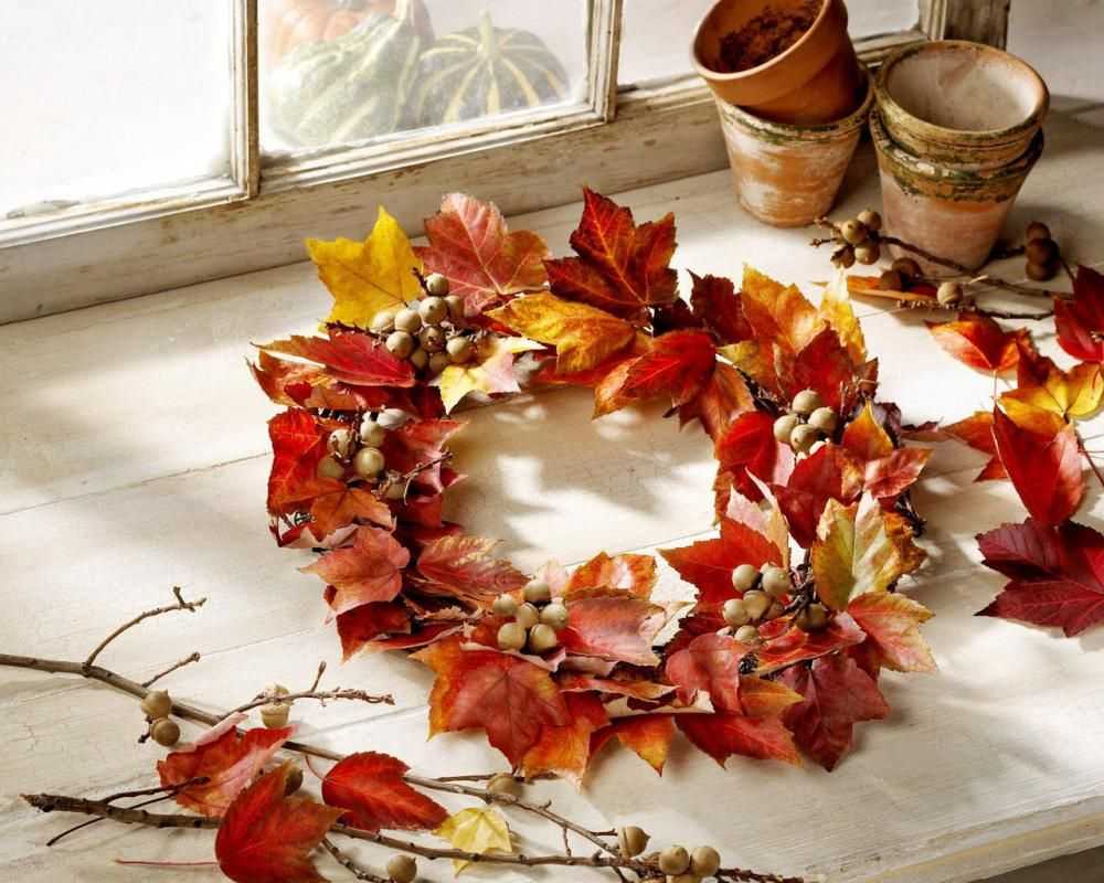 Такой яркий и реалистичный венок можно назвать «краски осени», «осенняя фантазия» и подарить маме, подруге, сестре в хмурый осенний денёк. По такому же принципу Вы можете создать другой шедевр. Продумайте дизайн венка и приступайте к творению своими руками!