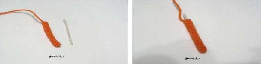 - 1-12 ряды: 6 сбн, закрепить нитку. Оставить для пришивания. Вставить в хвост проволоку.