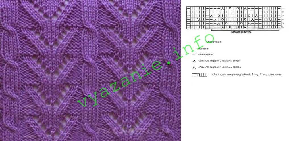 Крупный ажурный узор спицами: схема и описание