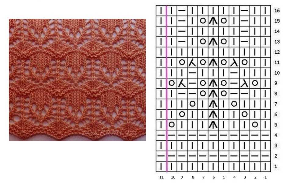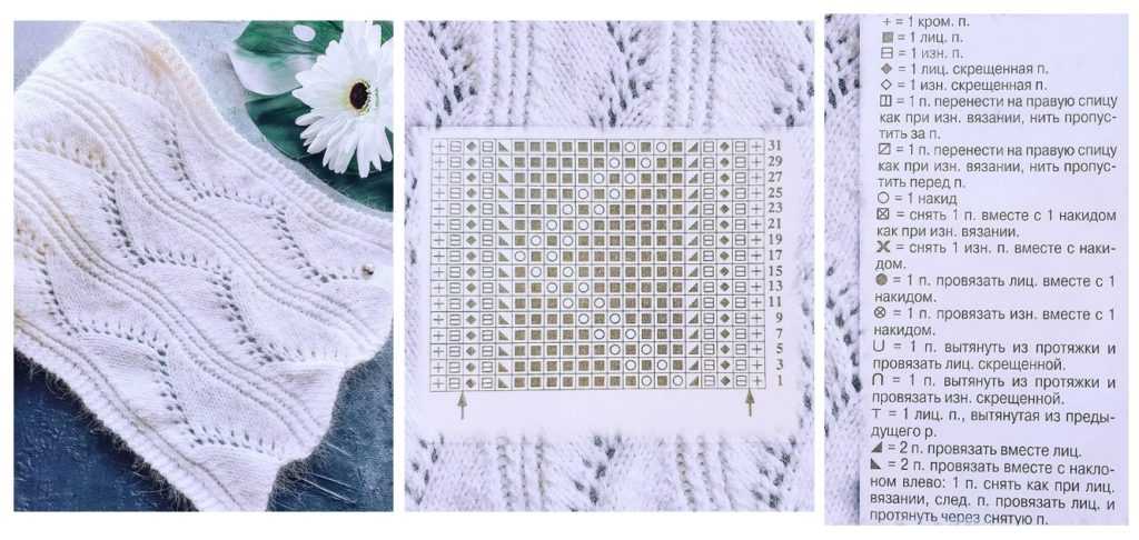 Простые ажурные узоры спицами со схемами