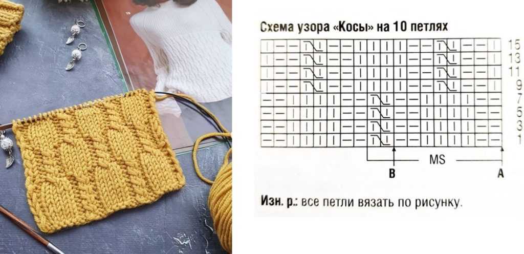 Рапорт узора составит 10 петель и 4 ряда