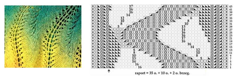 Рапорт узора по горизонтали равен 17 петель, по вертикали 8 рядов