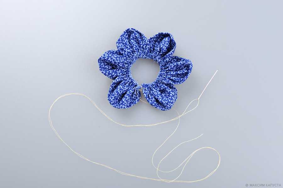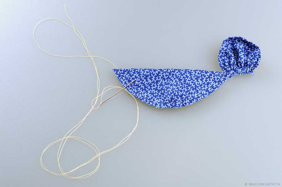 - Присборить лоскут ткани при помощи иглы и нити;